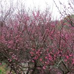 早咲きの紅梅は6~7分咲き、中咲きの七折小梅、鴬宿(おうしゅく)、白梅は