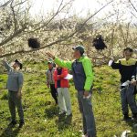 ミツバチによる、七折小梅の自然受粉 2018/03/16 2018 2024.09.11 ミツバチのうち、「働き蜂」が花粉を集め後脚にダンゴ状にして運搬します。 花粉を集めるとき、おしべの花粉をめしべにつけてくれます。これが受粉です。しかし、近年ミツバチが少なくなりました。
