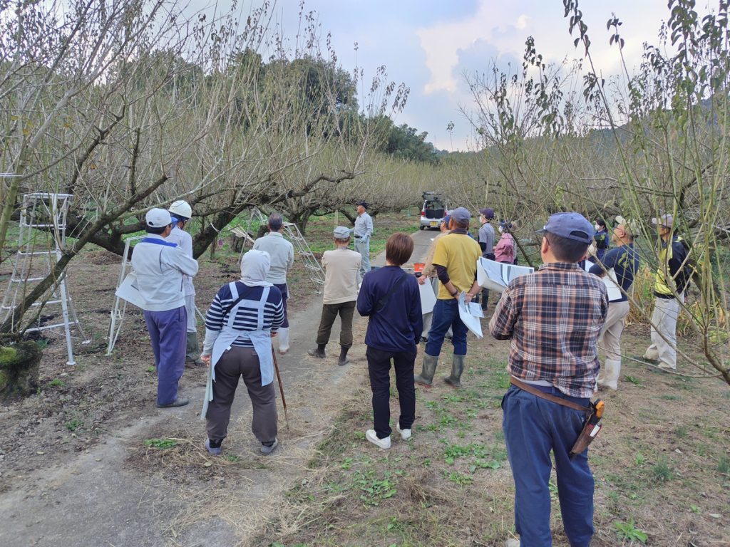 梅の剪定講習 2023/10/27 2023 2024.09.25 10月27日に梅の剪定講習を行いました。 5年産は豊作でしたので、木の生り疲れが心配です。 今年は夏の雨不足や暖冬予測と6年産にはあまりいい条件ではありません。 剪定からの肥培管理を徹底していきます。