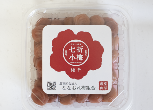 【七折小梅】梅干し-450g プラパック入 エコファーマーが育てた、小梅の中では日本一の品質を誇る【七折小梅】と、野菜農家と契約栽培した【赤シソ】、海の恵み「にがり」をほどよく含む、五島列島を臨む長崎産【天然塩】だけで作った安心安全の梅干です。内容量:450g原材料:七折小梅、シソ、食塩賞味期限:製造より1年間保存方法:直射日光・高温を避ける。