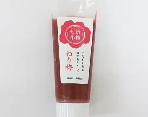 【七折小梅】ねり梅-100g チューブ 七折小梅を使いやすいようペースト状にしました。キャップ付きチューブに入っているので使いたい分だけ、ご使用いただけます。料理にひとサジ加えると、おいしくヘルシーに!!内容量:100g原材料:七折小梅賞味期限:製造から6か月保存方法:直射日光・高温を避ける。